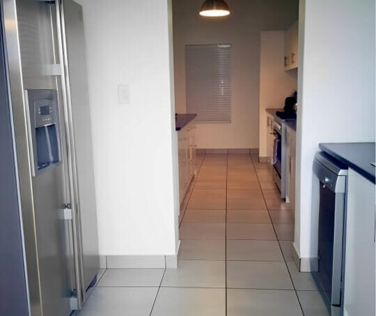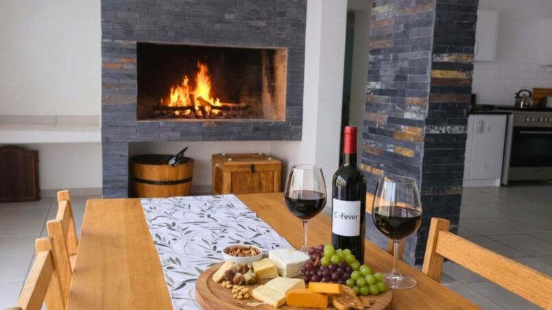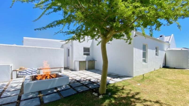 Sliding doors open from the braai area to a private, fenced garden, creating a safe space for children to play while parents relax. Additionally, guests can enjoy an outdoor fire pit, ideal for a traditional braai under the stars or simply unwinding with a sundowner.