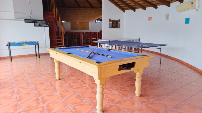 Sliding doors from the kitchen lead to an outdoor braai area with a table and four chairs, perfect for al fresco dining. Guests can also enjoy the complex’s games room and swimming pool for additional entertainment.
